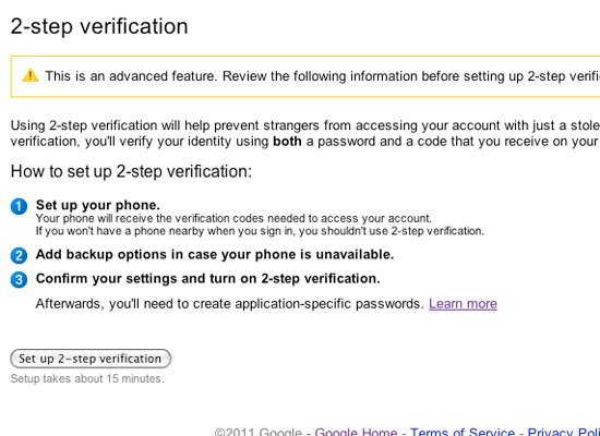 Slate's Farhad Manjoo writes, "A password is the only thing separating your e-mail, banking information, and social networks from a bad guy," and unfortunately, a complex password with letters, numbers and symbols just won't cut it anymore. Adding an additional layer of authentication -- like the key fobs required by many companies for security -- cuts down on the potential harm of a stolen password. It might seem like a lot of work, but a thief who has gained access to your Gmail account also has control over your calendars, Google Docs, Gchat, YouTube account and, of course, years of your personal email.